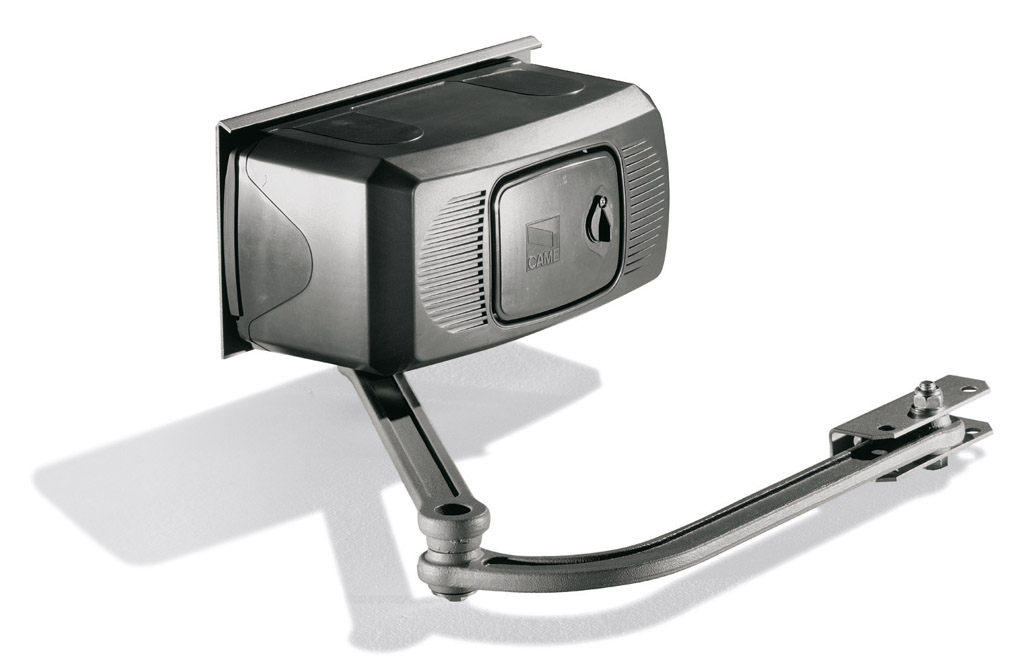 Рычажный электромеханический привод для распашных ворот CAME F1000 универсальное решение для распашных ворот на широких колоннах, где установка линейных приводов распашных ворот непрактична или невозможна. Применение рычажных приводов для распашных ворот CAME F1000 позволяет автоматизировать ворота с шириной створки до 4 м и расстоянием между осью петель и краем колонны до 38 см. Высокая антикоррозионная устойчивость к атмосферным осадкам гарантирована гальваническим покрытием тяг рычажного механизма.