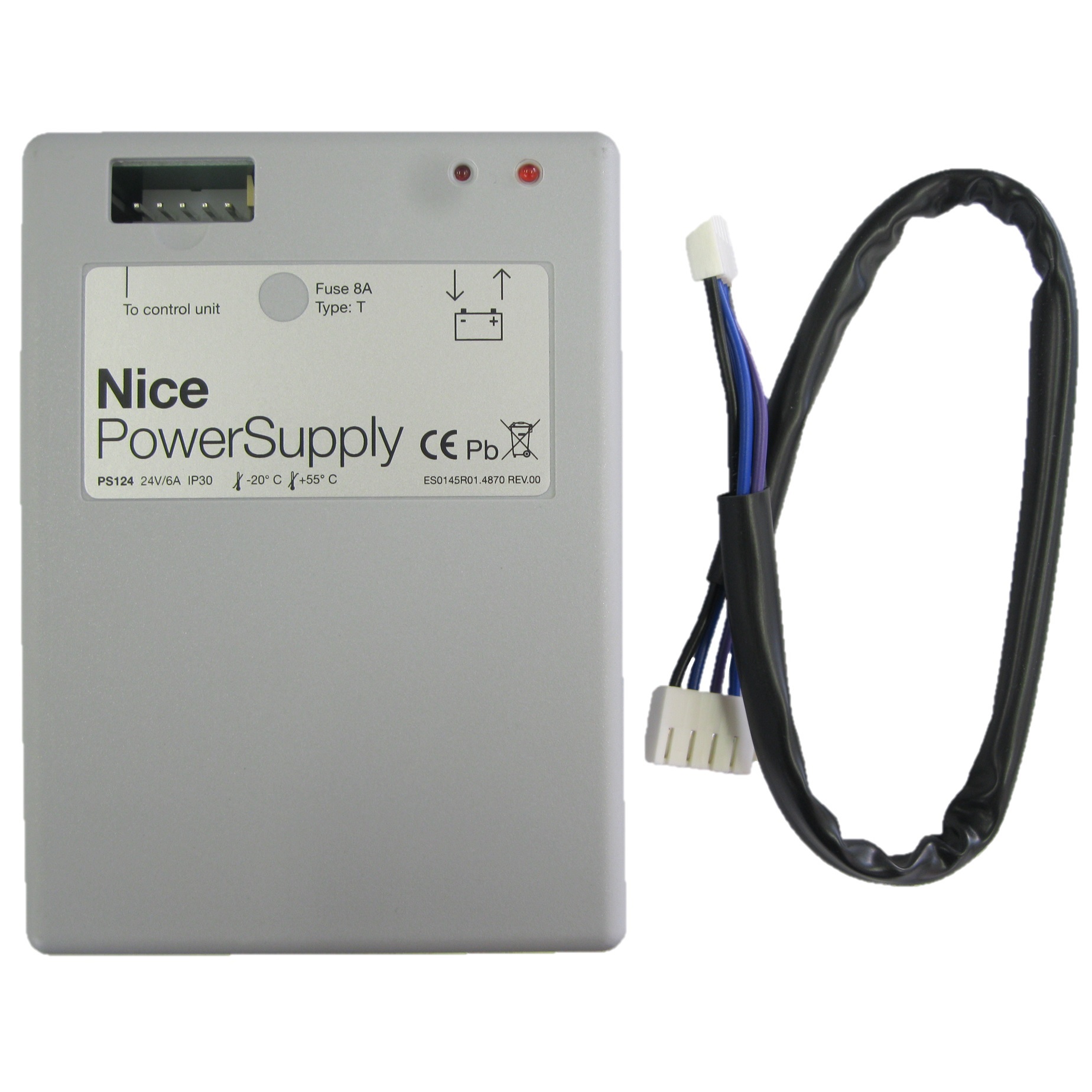 NICE PS124 - аккумуляторная батарея напряжением 24В и емкостью 1,2Ач со встроенным зарядным устройством для приводов с питанием 24В - гарантирует работу автоматики в случае отсутствия электроэнергии.