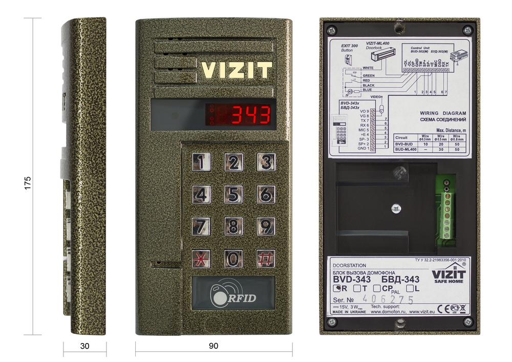 Блок вызова для совместной работы с БУД-302(М,К-20,К-80). Встроенный считыватель ключей  VIZIT-RF2 (RFID-125 kHz брелок EM-Marin). Светодиодный дисплей. Подсветка клавиатуры и логотипа. Рекомендуется использовать совместно с монтажным комплектом МК-311.