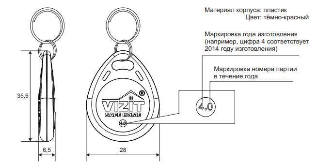 Идентификатор VIZIT–RF3.1 может быть использован как ключ доступа или как заготовка для изготовления дубликата. Ключом доступа идентификатор становится при его записи в систему контроля доступа. При этом доступ к ячейке для записи серийного номера ключа оригинала блокируется.