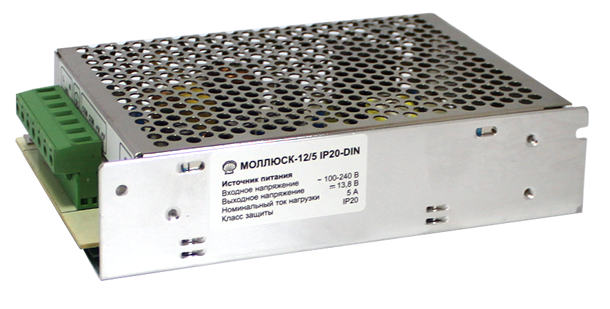 МОЛЛЮСК-12/5 IP20 DIN предназначен для питания напряжением 12 В постоянного тока от сети переменного тока напряжением 220 В различных устройств: