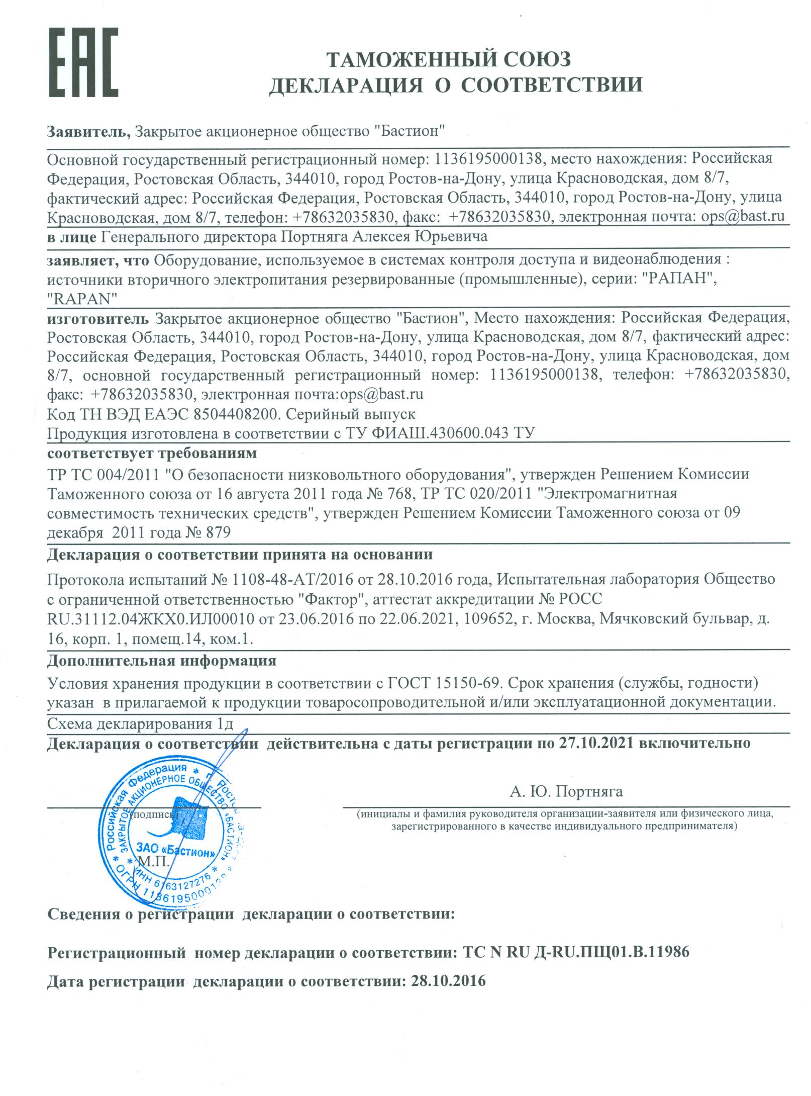 Область применения источника — обеспечение бесперебойного питания систем охранно-пожарной сигнализации, видеонаблюдения и других устройств.