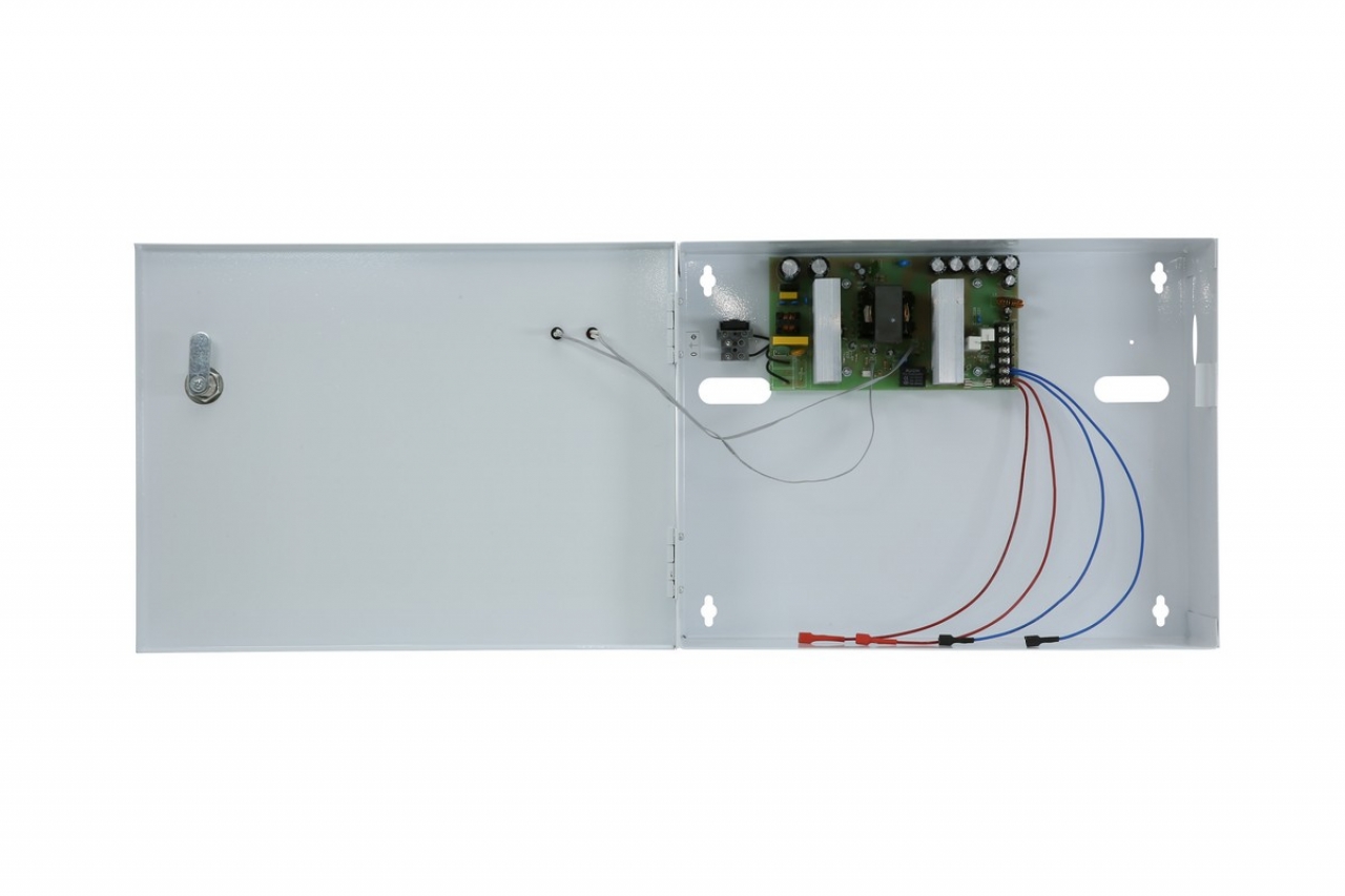 Металлический корпус. Замок на крышку. U=11,5 - 14В. Iном=10А, Iмакс.=10,5А. АКБ 2х17А/ч; 3х12А/ч или 4х7А/ч. Размер 373х420х100мм.