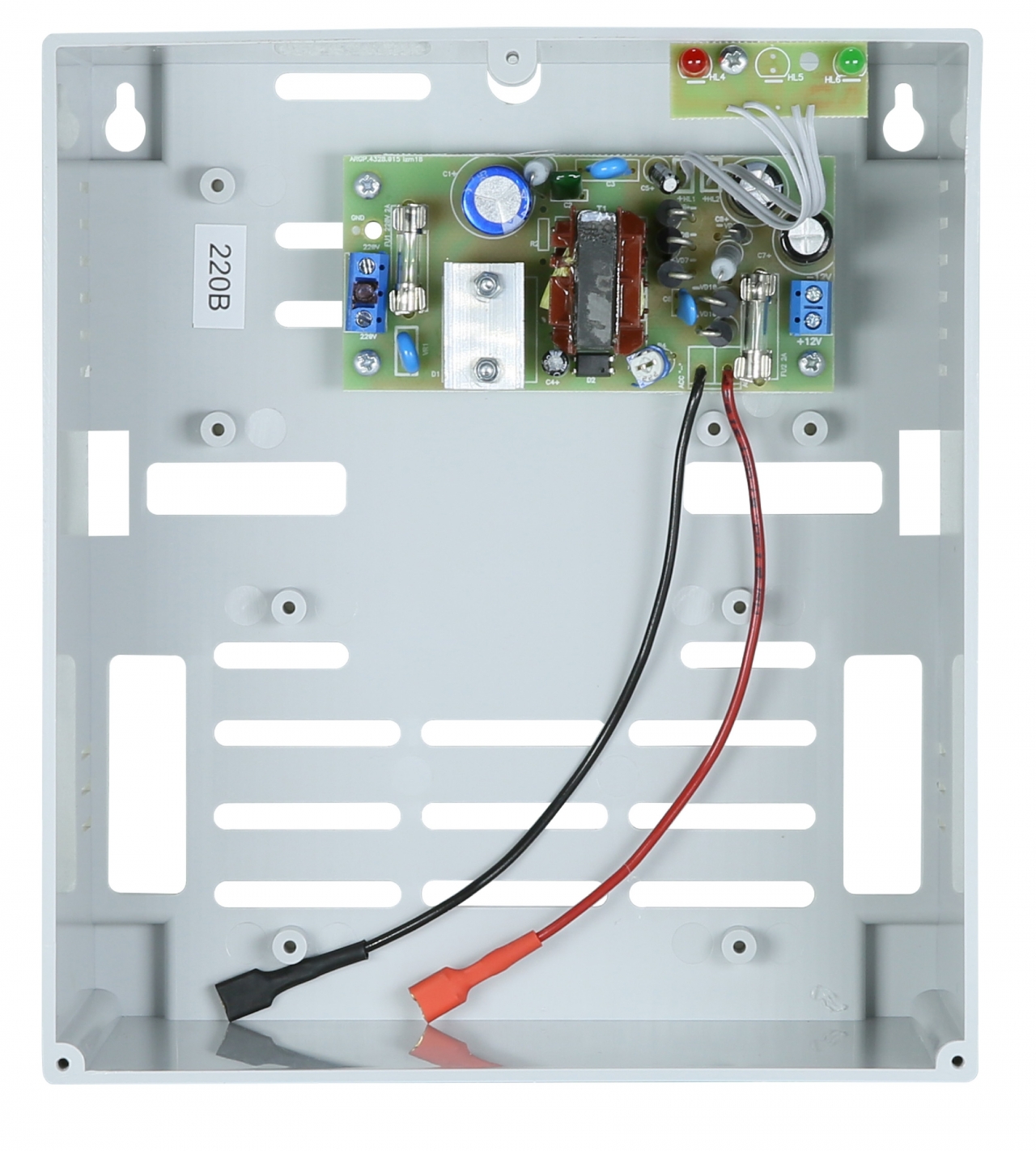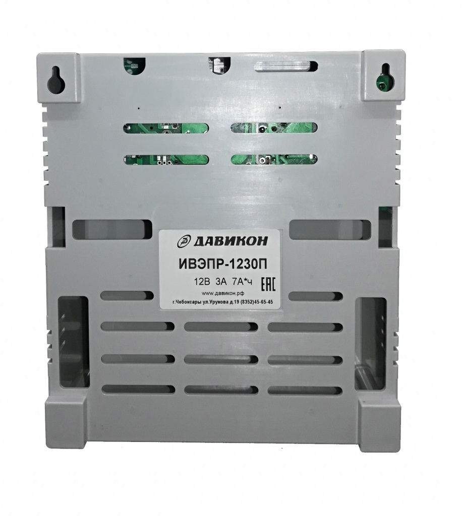 Пластиковый корпус (не поддерживающий горение, не требует заземления). U=12B, Iном=3А, Iмакс.=3,5А, АКБ 7А/ч. Размер 185х180х70 мм