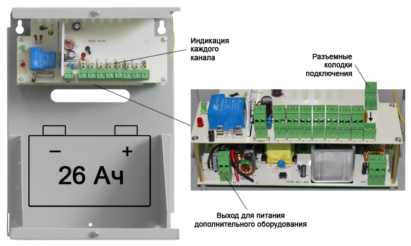 - защиту выходов по току при помощи самовосстанавливающихся предохранителей