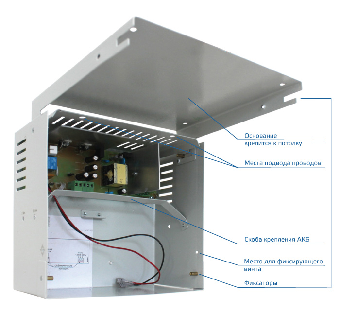 - Защиту от падения частей корпуса и АКБ при открытии (снятии) крышки