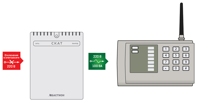 ИБП SKAT-UPS 100/80 рассчитан на круглосуточный режим работы в закрытом помещении в температурном диапазоне -10…+40 ºС и относительной влажности воздуха до 80% (при 25 ºС). Имеет отсек для размещения в нём аккумуляторной батареи, благодаря которой может обеспечивать подключенные устройства электроэнергией при отсутствии напряжения в сети или выходе его за допустимые пределы.