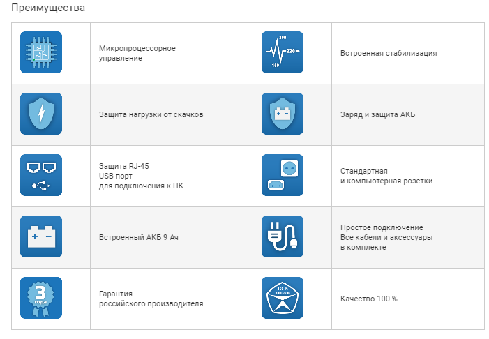 - автоматический переход в режим работы от сети при восстановлении сетевого напряжения