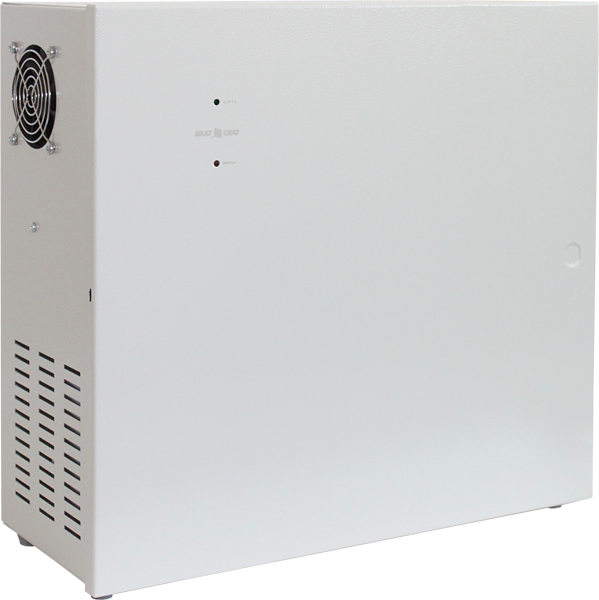 - питание нагрузки (две выходных клеммных колодки) стабилизированным напряжением постоянного тока при наличии напряжения в электрической сети, и суммарным током потребления по трем выходам, включая ток заряда АКБ, не более 24 А
