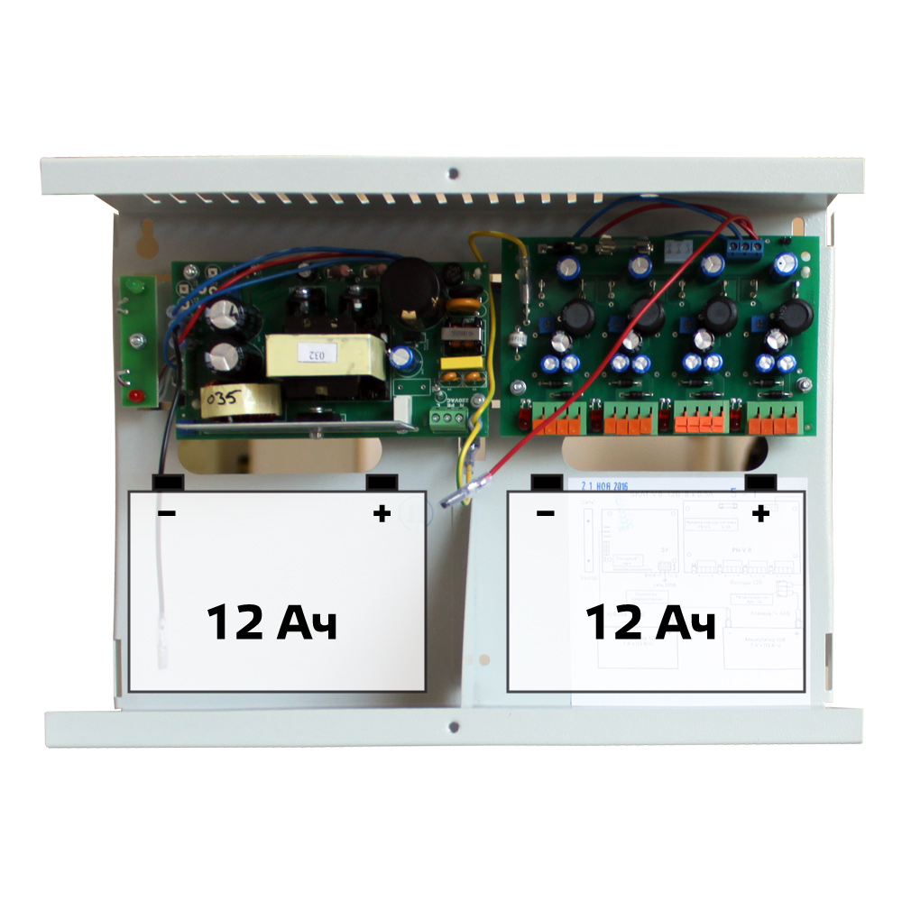 Рекомендуемый тип батареи: два герметичных необслуживаемых свинцово-кислотных аккумулятора с номинальным напряжением 12 В каждый