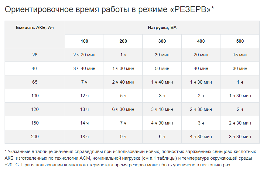 | Величина напряжения на клеммах АКБ, при котором происходит автоматическое отключение нагрузки для предотвращения глубокого разряда АКБ в режиме «РЕЗЕРВ», В | 10,2 ± 0,3 |