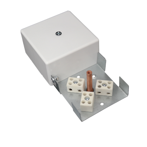Внутри корпуса коммутационной коробки располагаются керамические клеммные колодки, обеспечивающие соединение «под винт», и зажим заземления. Для крепления к элементам конструкций в днище корпуса предусмотрены отверстия для винтов или саморезов.
