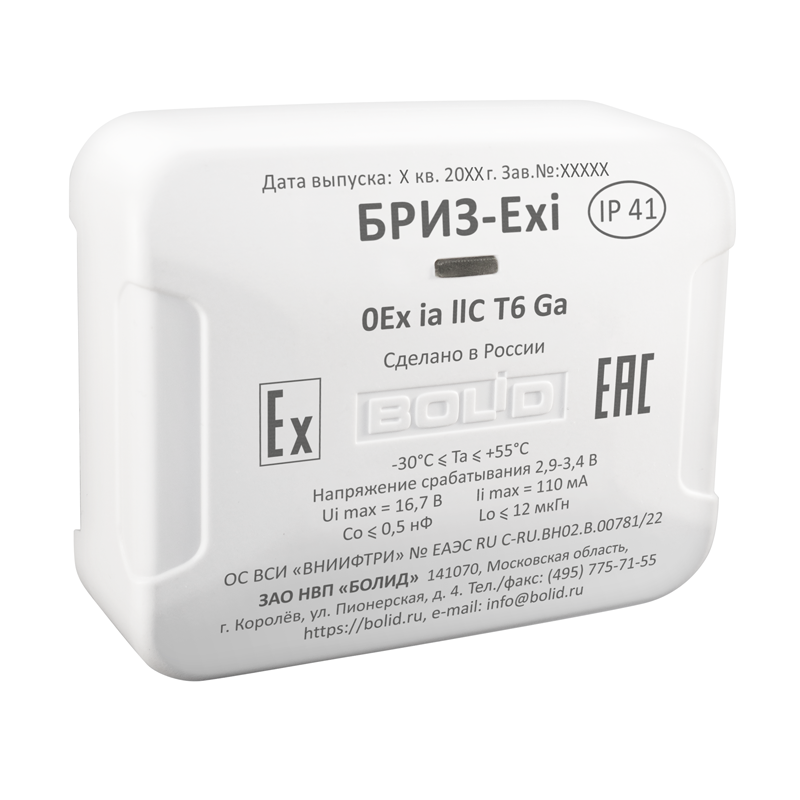 Искробезопасная линия связи создается барьером искрозащитным «С2000-Спектрон-ИБ» или «С2000-Барьер-Exi».