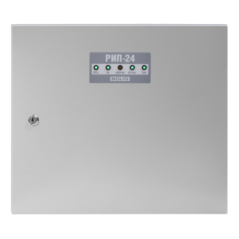 Предназначен для питания извещателей, приборов ОПС, СКУД и пожарной автоматики в составе ИСО «Орион». 24 В, 8 А (max 11 А); емкость устанавливаемых АБ 40 Ач (2 шт.); два независимых RS-485 интерфейса; два выхода к нагрузке с индивидуальной защитой по току; защита: от перенапряжения, от КЗ, от переполюсовки АБ.
