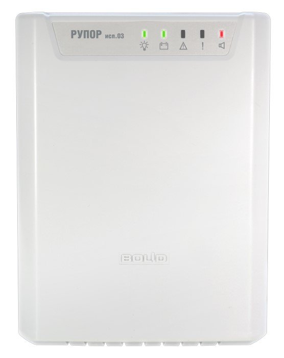 - блок речевого оповещения "Рупор исп. 03" предназначен для построения систем оповещения и управления эвакуацией (СОУЭ)