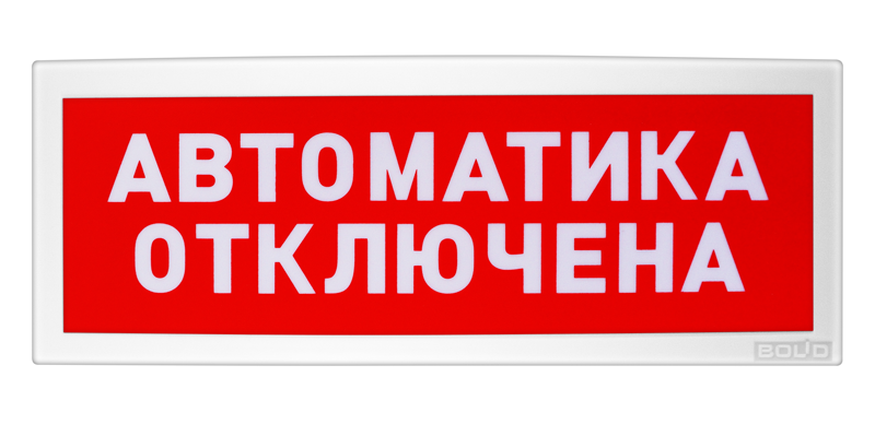 Оповещатель световой  радиоканальный с надписью "Автоматика отключена". Время непрерывного свечения - 60 час.  От  минус 30 до +55°С.