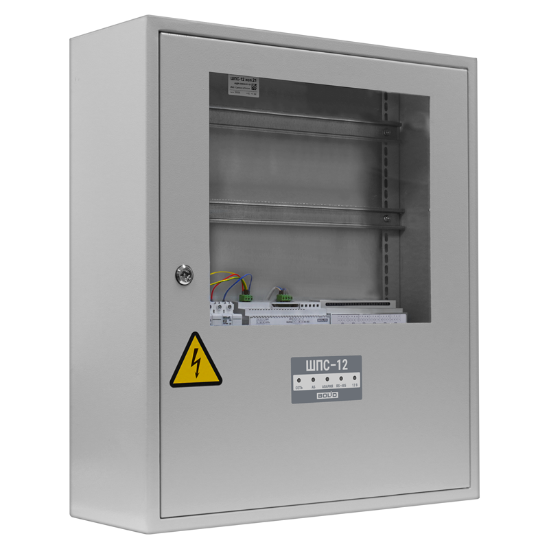 ШПС-12 обеспечивает контроль сетевого напряжения, выходного напряжения и напряжения АБ, а также автоматическую передачу извещений о наличии соответствующих напряжений/неисправностей, разряде аккумулятора, плохом состоянии АБ или его отключении, вскрытии корпуса с помощью интерфейса RS-485.