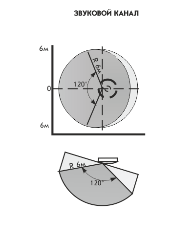 дальность обнаружения в секторе объемного угла 120 ° из центра микрофона АК-канала 6 м