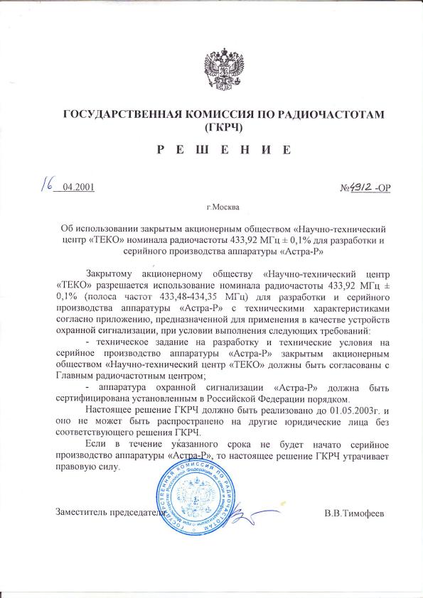 | - режим 1 ("старый" радиоканал) | 433,92 МГц |