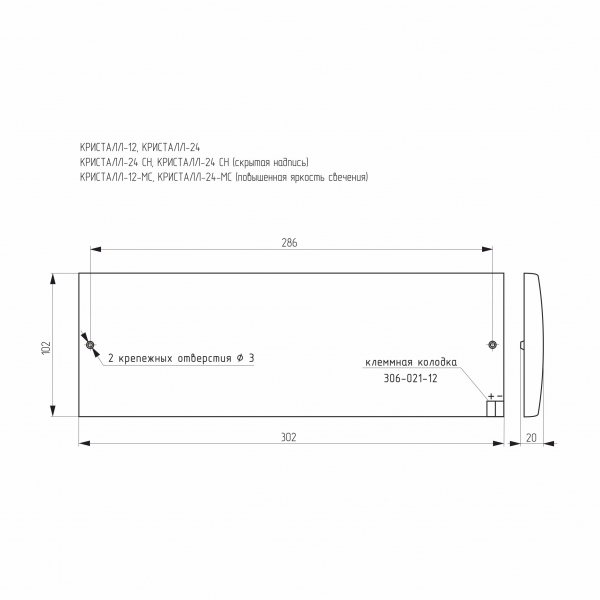 Габаритные размеры, мм: 302 х 102 х 20