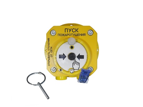 "ПУСК ПОЖАРОТУШЕНИЯ"(желтый). Корпус - алюминиевый сплав. Маркировка взрывозащиты.1Ex db IIC T6 Gb/Ex tb IIIC T85ºC Db Цифровой интерфейс по протоколу HART. I деж - 10мА, I пож - 30мА