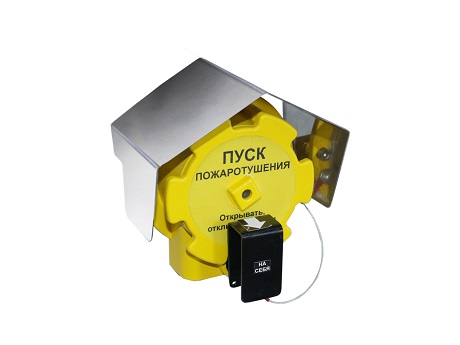 "ПУСК ПОЖАРОТУШЕНИЯ" (желтый). Корпус - нержавеющая сталь. Маркировка взрывозащиты.РВ Ex db I Mb/1Ex db IIC T6 Gb/ Ex tb IIIC T85ºC Db. Температурный диапазон от - 65°C до + 85°C