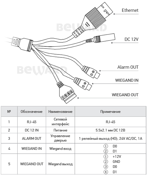 1 Wiegand-26-34 выход для подключения контроллера | |