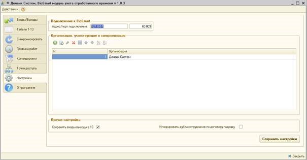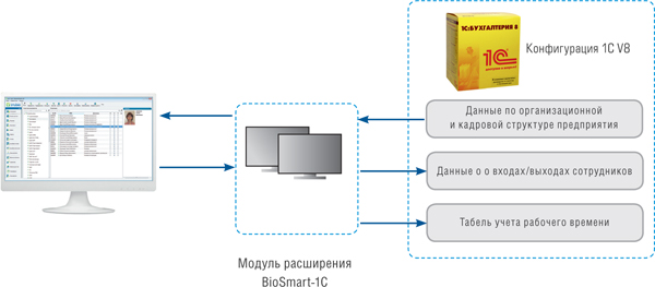 -передача данных об организационной структуре, кадровом составе и производственном календаре предприятия из 1С в BioSmart;