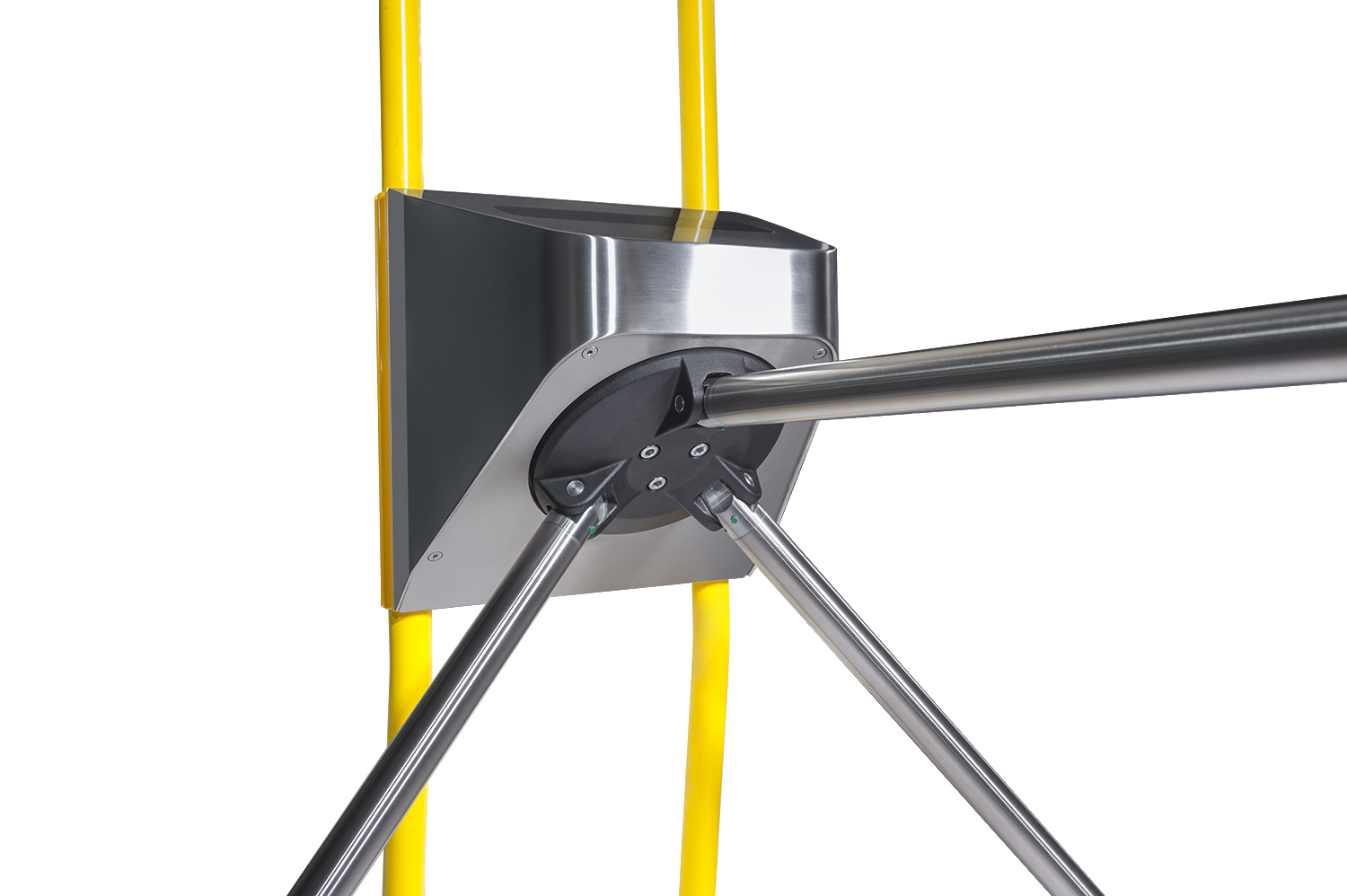 Плата блока управления конструктивно размещена в корпусе турникета. После каждого прохода механизм доворота переводит преграждающие планки в исходное положение. Плавный доворот планок осуществляется за счет встроенного электропривода.