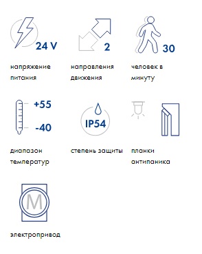 - Пропускная способность в режиме однократного прохода: 30 чел./мин