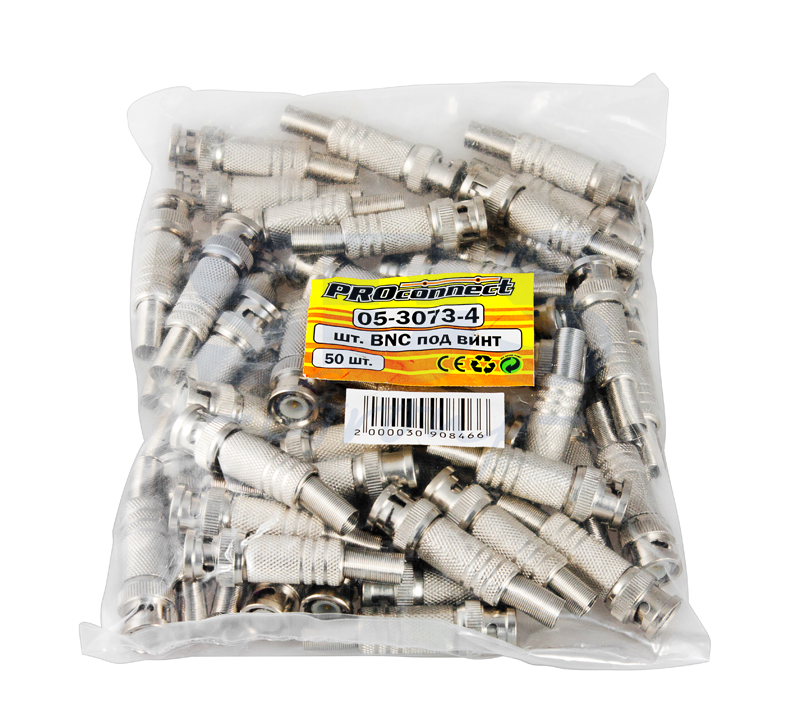 BNC-коннектор (BNC сокр. от Bayonet Neill Concelman) под винт - электрический разъем с байонетной фиксацией закрепляется на кабеле зажимом с помощью винта центрального контакта (центральная жила - под винт, оплетка - обжимается). Этот способ крепления значительно проще и быстрее, чем пайка, но его надежность и качество соединения остаются на неизменно высоком уровне. Металлический колпачок с пружиной защищает соединения и предотвращает кабель от перегиба в месте крепления к разъему.