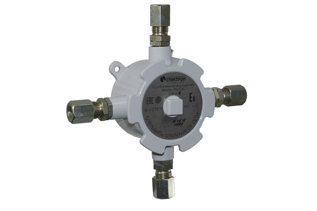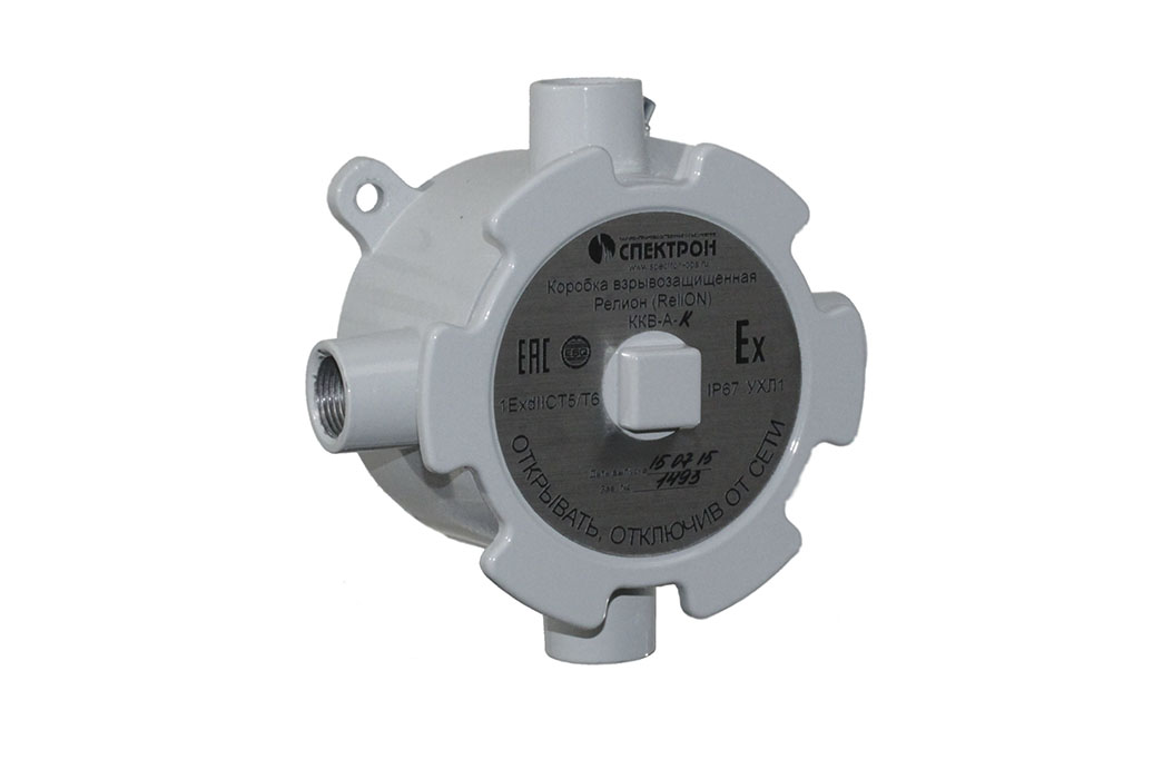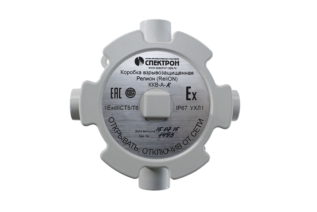 Коробка выполнена в соответствии с требованиями на взрывозащищенное оборудование подгрупп IIА, IIВ, IIС по ГОСТ 30852.0 (МЭК 60079-0) и соответствует маркировке взрывозащиты 1ExdIICT5/Т6. Корпус коробки изготовлен из алюминиевого сплава АК12 и имеет степень защиты не менее (IP66/68) от воздействия внешней среды.