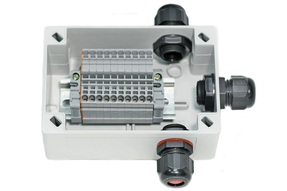 Монтаж коробки: 4 крепежных отверстия, изолированных от внутреннего объема коробки