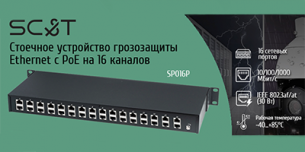 SC&T - Стоечное устройство грозозащиты Ethernet c PoE на 16 каналов.