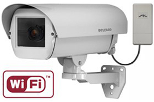 В данном варианте исполнения камера может подключаться к сети как по кабелю, так и с помощью модуля Wi-Fi, поддерживающего стандарт 802.11b/g, до 54 Мбит/с со встроенной направленной панельной антенной 10 dBi, мощностью до 400 мВт, с возможностью работы на нестандартных частотах. Мощный и надежный Wi-Fi модуль обладает расширенными настройками беспроводного соединения и может работать в нескольких режимах применения: точка доступа, беспроводной мост, беспроводной клиент, WDS. Благодаря сложной встроенной антенной системе пользователь может программно менять поляризацию и диаграмму направленности. Модуль Wi-Fi поддерживает все распространенные режимы шифрования.