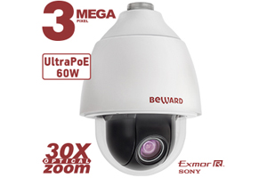 Скоростная купольная IP-видеокамера BD143P30 уличного исполнения с функциями автокалибровки и безопасного холодного старта поддерживает подключение по технологии Ultra PoE (60 Вт). BD143P30 отличается качественным, детализированным изображением в любое время суток благодаря сверхчувствительному сенсору SONY Exmor R. Встроенный объектив реализует 30-кратное оптическое увеличение. Поддержка аппаратного WDR позволяет обрабатывать сцены с перепадом освещенности до 50 тыс. раз. Мощный процессор обеспечивает эффективную обработку видеосигнала в формате Н.265. Малый вес и компактный размер облегчают монтаж и снижают вибрацию при установке на объекты с недостаточной жесткостью, например, на мачту.
