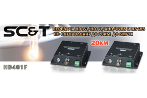 HD401F - Комплект (HD401FT+HD401FR) для передачи HDCVI/HDTVI/AHD/CVBS и сигнала управления RS485(полудуплекс) по оптоволокну*. Технология кодирования видеосигнала без компрессии. Максимальное разрешение 5Mpix. Рабочие длины волн 1310нм/1550нм (WDM - одно волокно). Оптический разъём: FC. Устройства выполнены в прочных металлических корпусах с возможностью настенного крепления, имеют контакты для заземления.